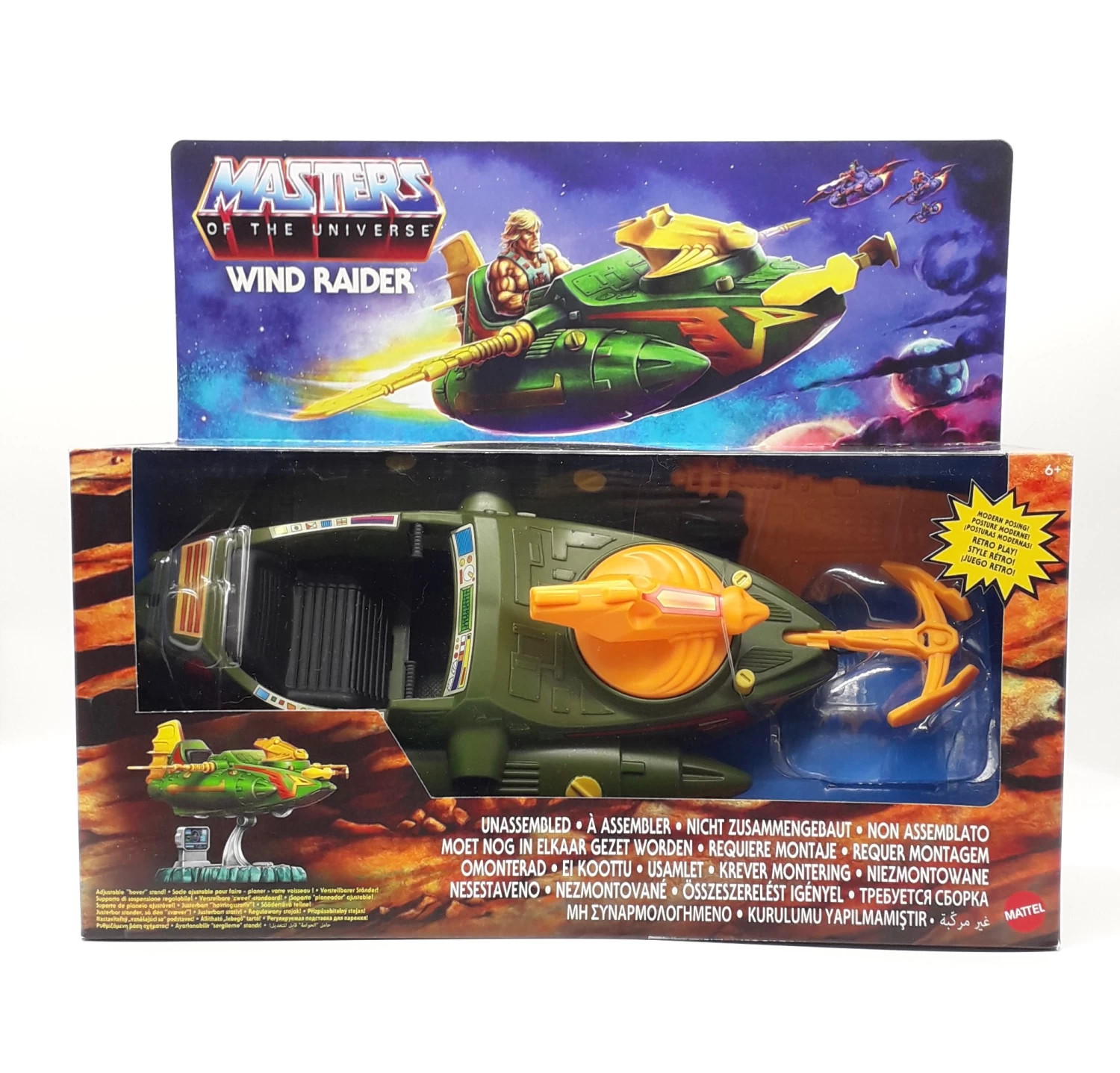 Das Wind Raider-Fahrzeug besitzt tolle Funktionen wie echt rollende Räder, eine schwenkbare Heckflosse und rotierende Flügel sowie einen Abschlepphaken mit einziehbarer Schnur. Zu dem Set gehört auch eine Ausstellungsplattform, die auf Castle Grayskull (separat erhältlich) angebracht wird und das Fahrzeug gleichsam „fliegen lässt! Gestandene Fans werden dieses sorgfältig gestaltete Wind Raider-Fahrzeug lieben, das den Traditionen der Serie treu bleibt und zugleich mit neuen Designdetails aufwartet.