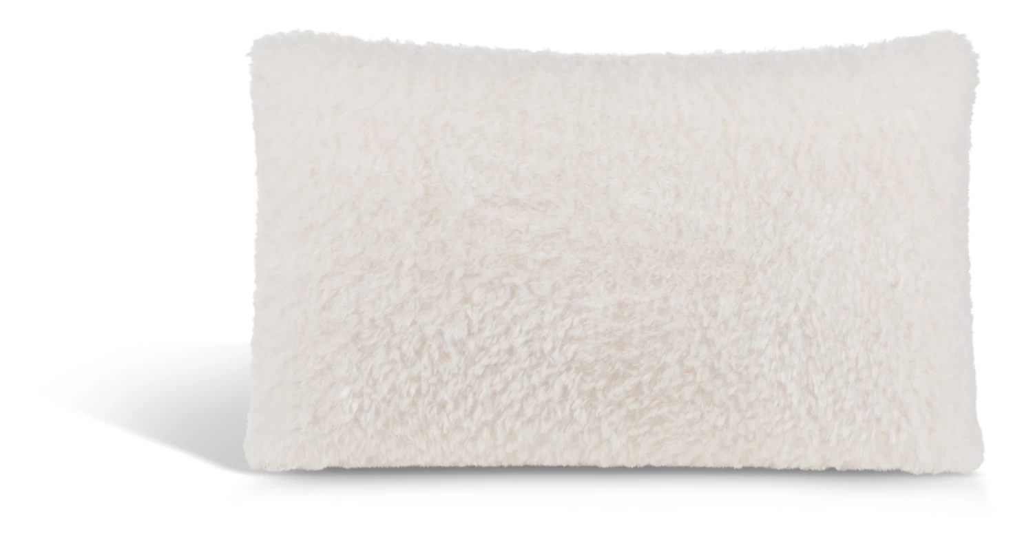 Die Rückseite des Kissens hat etwas längeren sehr weichen Plüsch