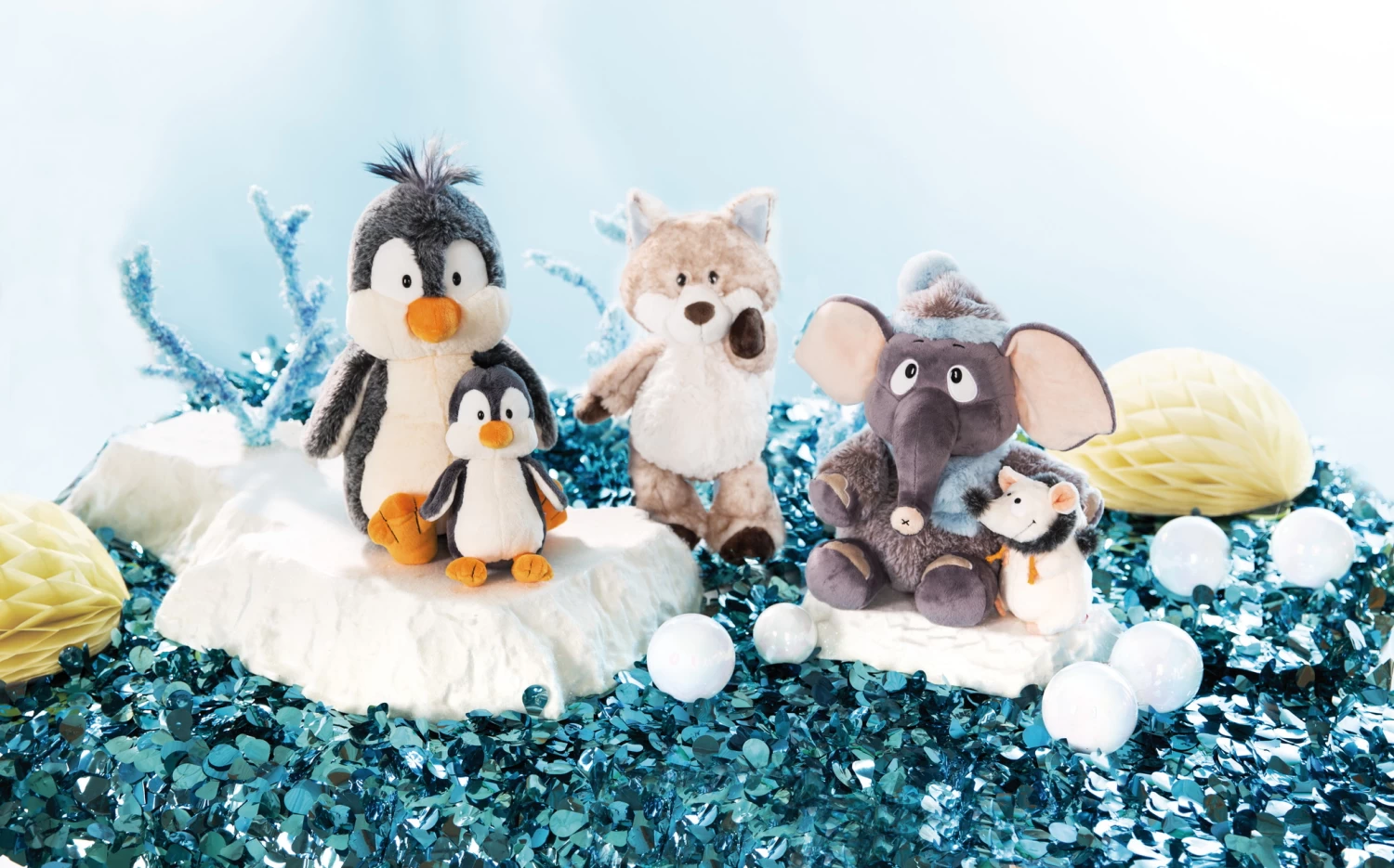 Nici 47293 Kissen Elefant, Pinguin, Schneefuchs 43x25cm Plüsch Winter Discovery