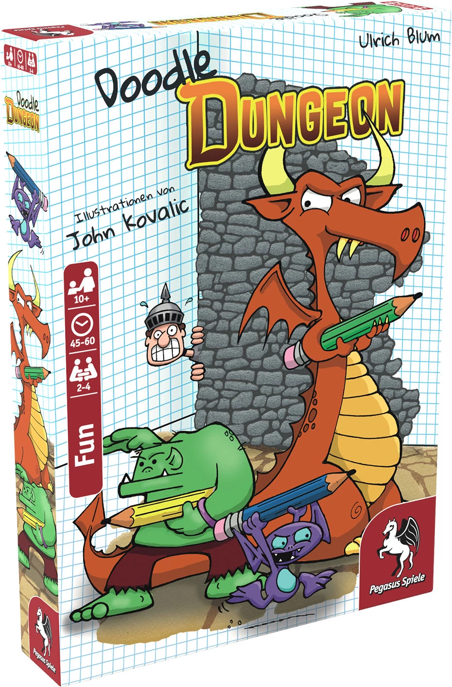 Bei Doodle Dungeon werden zunächst Karten gedraftet, um den eigenen Dungeons zu kreieren. Wann immer ein Spieler eine Karte nimmt, zeichnet er sofort die darauf abgebildeten Dungeon-Elemente in seinem Plan ein. Hat jeder Spieler 14 Karten genommen, geben alle ihren Dungeon an ihren linken Nachbarn weiter. Dieser zeichnet nun eine Route für den Dummy-Helden ein und gibt den Plan dann zurück. Jeder setzt die Heldenfigur auf sein jeweiliges Startfeld und lässt sie Zug für Zug den eingezeichneten Weg durch den Dungeon bewältigen, Monster bekämpfen und Schätze sammeln. Die gesammelten Karten können dabei im eigenen Dungeon helfen oder den Helden anderer Spieler unterstützen.