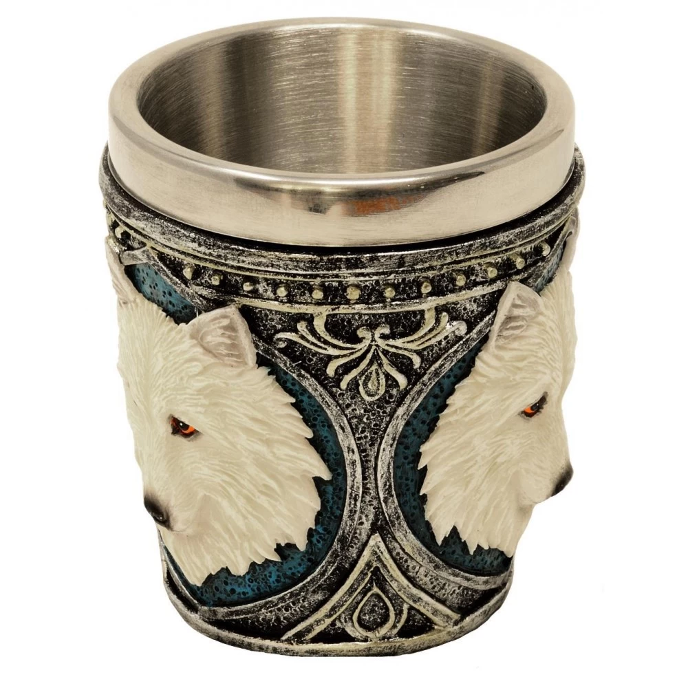 Becher aus Metal, Wolf aus Polyresin