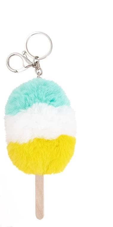 Der flauschig-weiche Eis-Schlüsselanhänger weckt die Lust auf Sommer, Sonne, Sonnenschein.